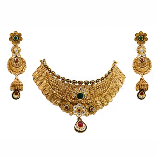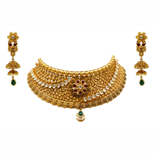 Feel like a queen with our beautiful range of Kundan jewellery. The traditional designs and beautiful royal patterns are sure to capture your imagination. It is a pure reflection of India’s heritage. VR Gold takes pride in its exquisite Kundan jewellery collection, made from highly refined gold and intricate embellishments. The range comprises Kundan sets, chokers, rings, chand balis and jhumkis. Bring in a royal allure to your style statement with our Kundan jewellery collection.